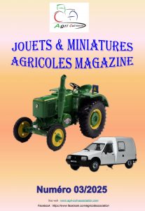– Vous recevrez trimestriellement « Jouets et Miniatures Agricoles », un magazine qui traite de l’actualité du modèle réduit dans son ensemble. L’adhésion est annuelle (du 1er janvier au 31 décembre).